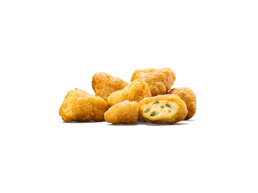 Farm Frites Čedarové nugetky s jalapeños. Obalované sýrové nugetky, předsmažené, hluboce zmrazené.