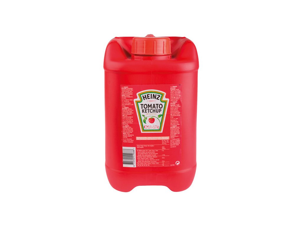 Klasický rajčatový kečup Heinz bohaté chuti a hutné konzistence se dokonale hodí ke každému jídlu. V každé láhvi jsou jen ta nejchutnější rajčata, která dozrála na slunci. Na 100 g kečupu bylo použito 148 g rajčat. Baleno v praktickém kanystru o obsahu 5,1 l.Rajčata (148 g na 100 g kečupu), kvasný ocet lihový, cukr, jedlá sůl, extrakty koření a bylin (obsahuje CELER), koření.
