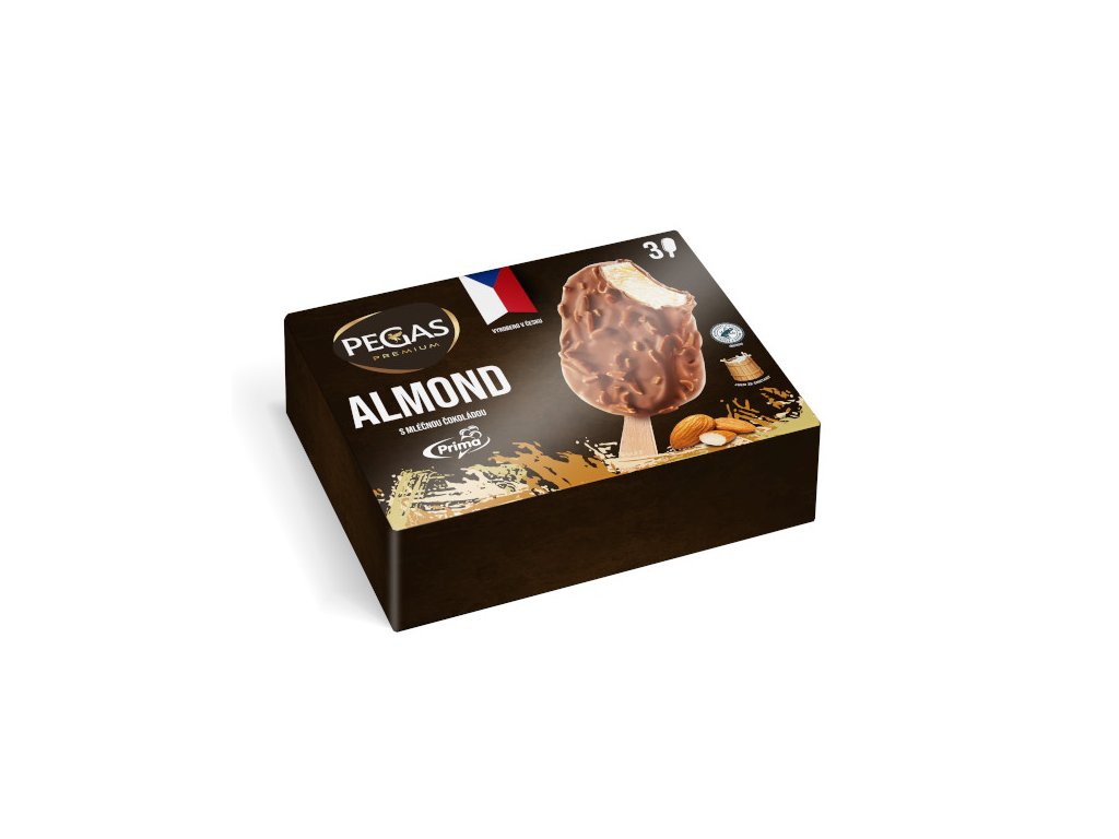 Pegas Premium Almond – Multipack. Mražený smetanový krém v mléčné čokoládě s mandlemi.