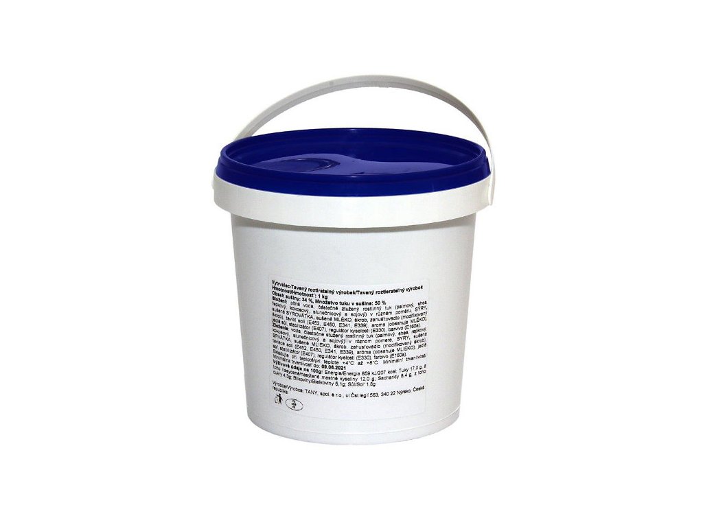 Tavený roztíratelný výrobek v praktickém uzavíratelném kbelíku.Pitná voda, částečně ztužený rostlinný tuk (palmový, shea, řepkový, kokosový, slunečnicový a sojový) v různém poměru, SÝRY, sušená SYROVÁTKA, sušené MLÉKO, škrob, zahušťovadlo (modifikovaný škrob), tavicí soli (E452, E450, E341, E339), aroma (obsahuje MLÉKO), jedlá sůl, stabilizátor (E407), regulátor kyselosti (E330), barvivo (E160a).