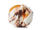 Jemná vanilková zmrzlina sypaná praženými piniovými oříšky a mandlovým krkokantem, zalitá karamelovou polevou.