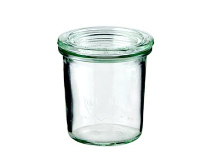 Zavařovací sklenice na vyklápění., prům. 100 mm, 69 mm vyška., bez spon a gumič., 370 ml, Weck, 1 ks